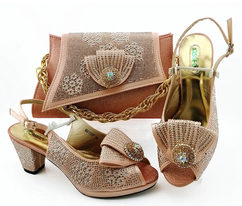 SALE Peach shoes matching bag set italy design 2019 3 inches sandal shoes and clutches bag set for aso e